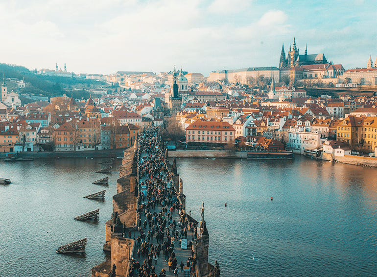 Take Prague, possibly the world’s most beautiful city. In its more than 1,000 years of history, it accumulated hundreds of church spires and historic buildings. It’s small, dense, and walkable, with pedestrian-friendly bridges and cobblestone streets. Its main attractions aren’t shopping centers or fast-food outlets, but gardens, churches, and monuments.